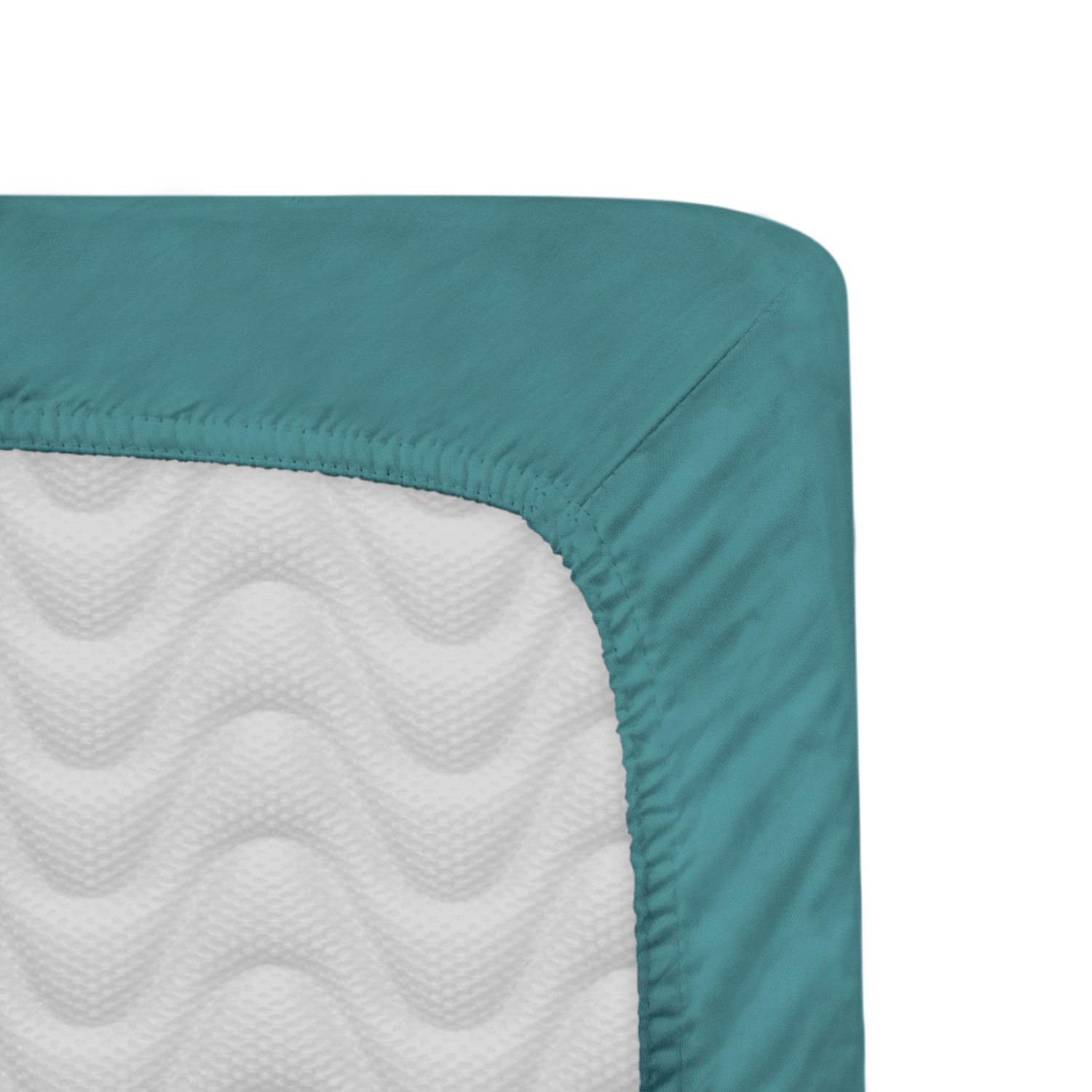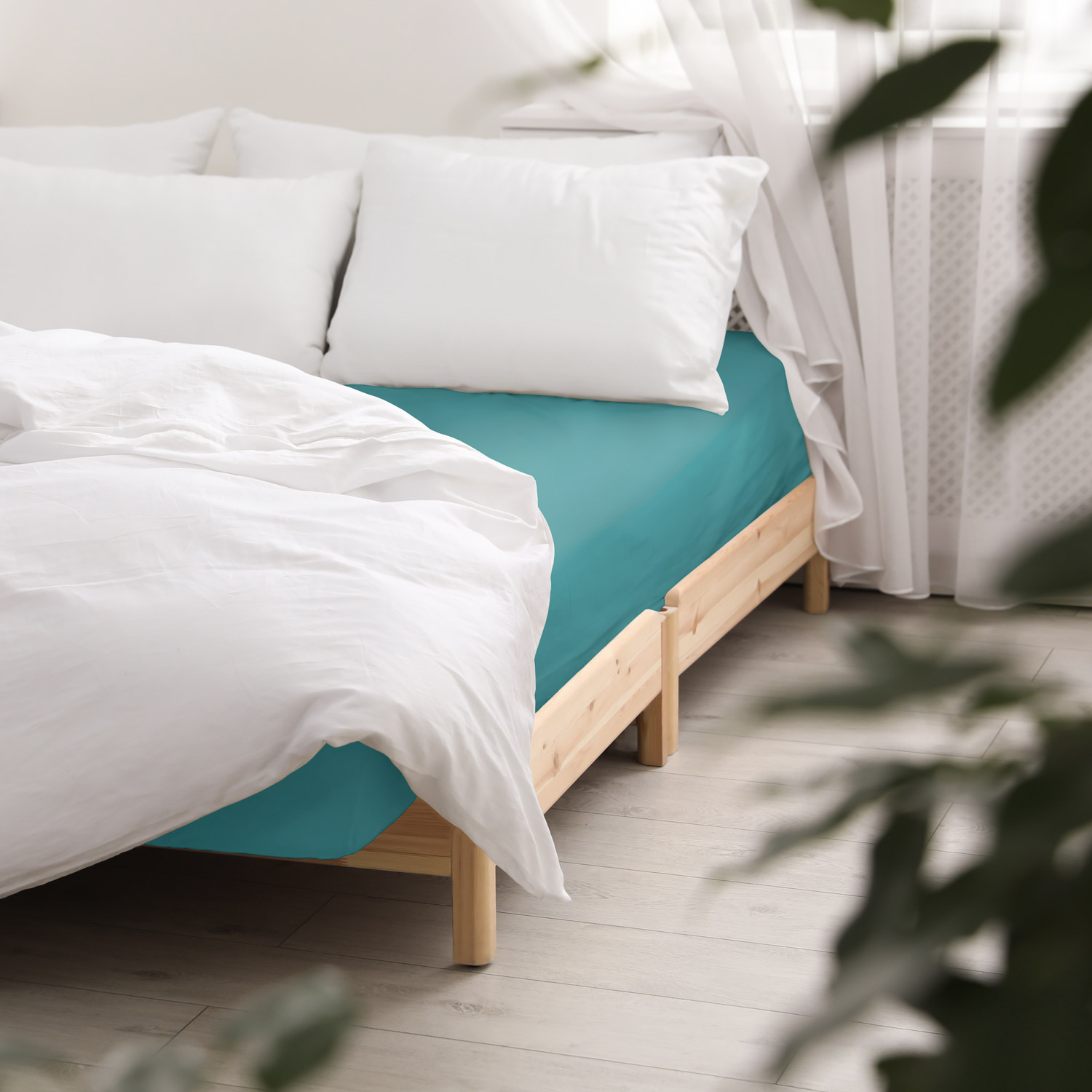 Простыня из хлопкового сатина на резинке темно-бирюзовая 042/140x200Простыня из хлопкового сатина на резинке темно-бирюзовая 042/140×200