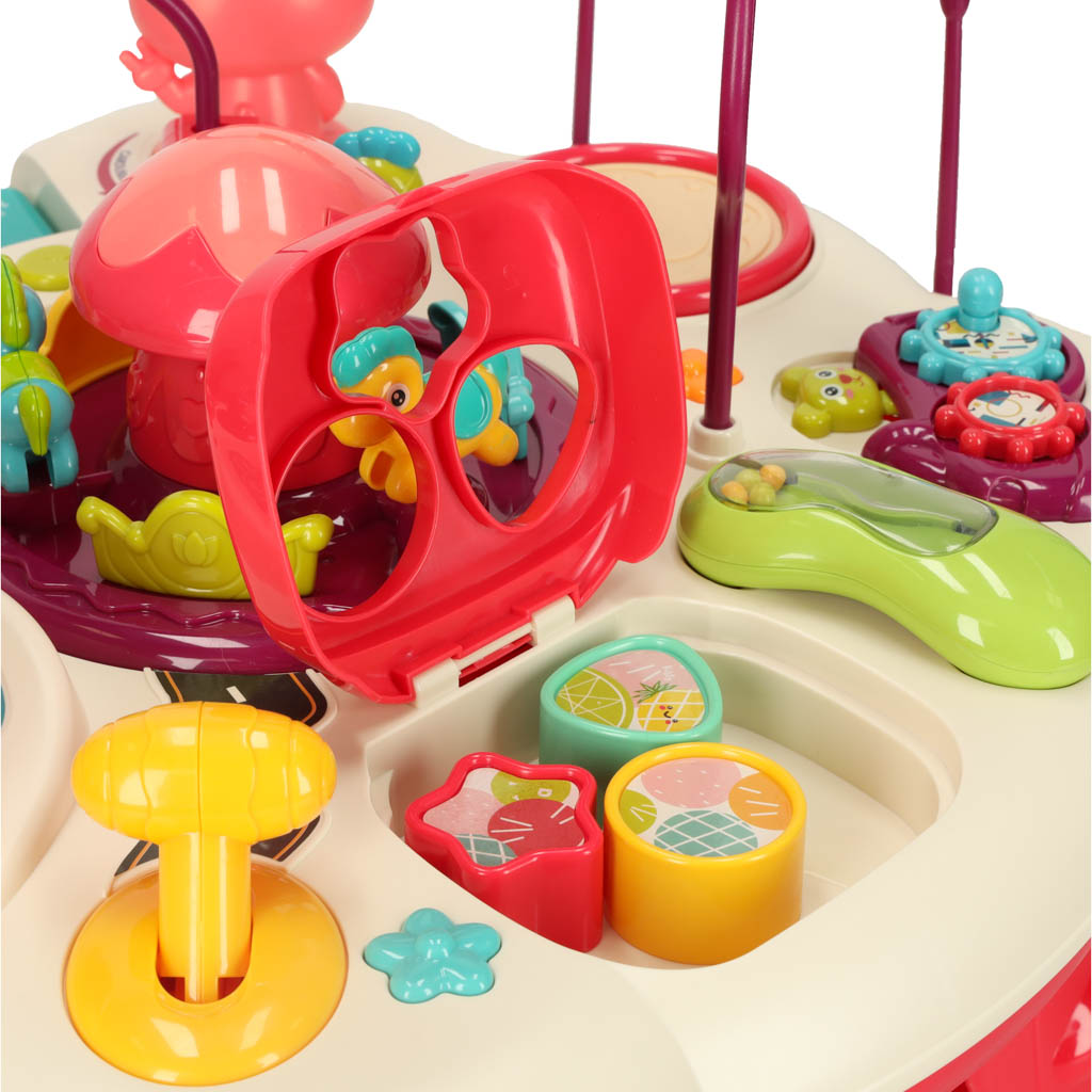 Высота столика подстраивается под рост ребенка, чтобы ему было удобно играть с этим маленьким развлекательным центром!