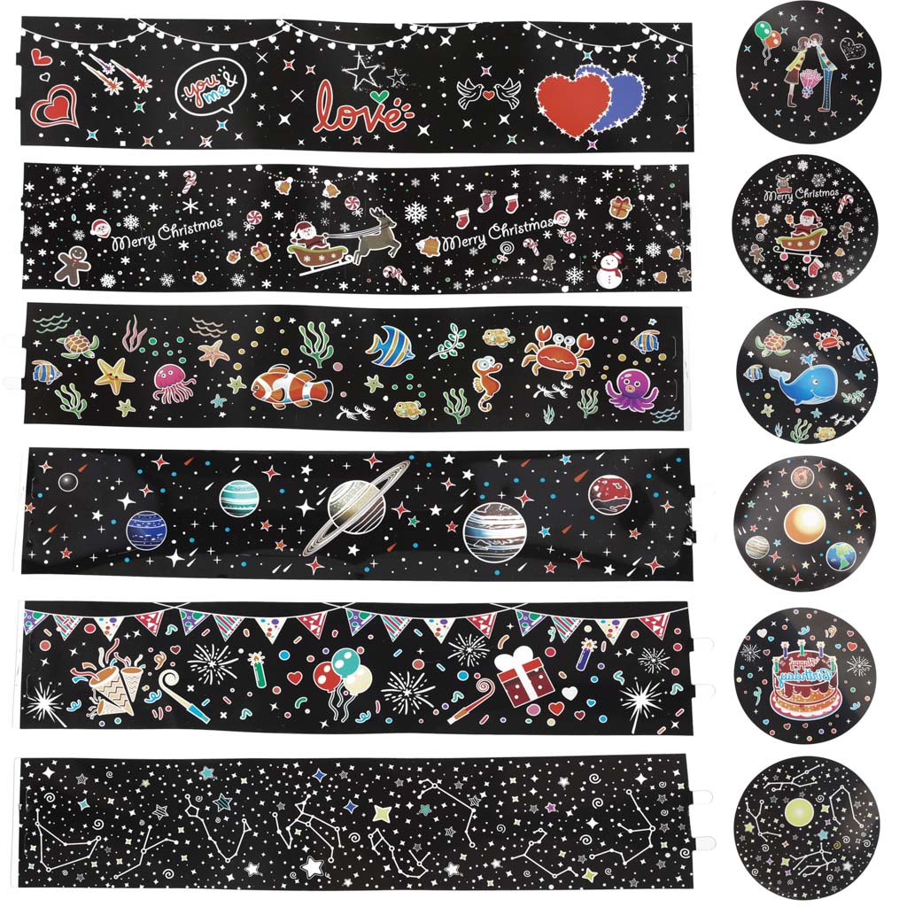 Тематика: 6 сменных тарелок — созвездия, планеты, подводный мир, дни рождения, Рождество и День Святого Валентина
