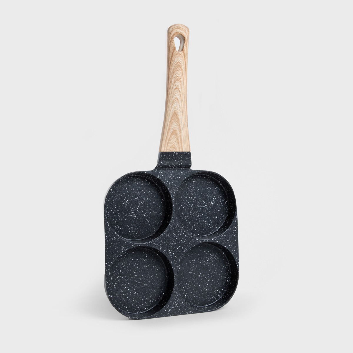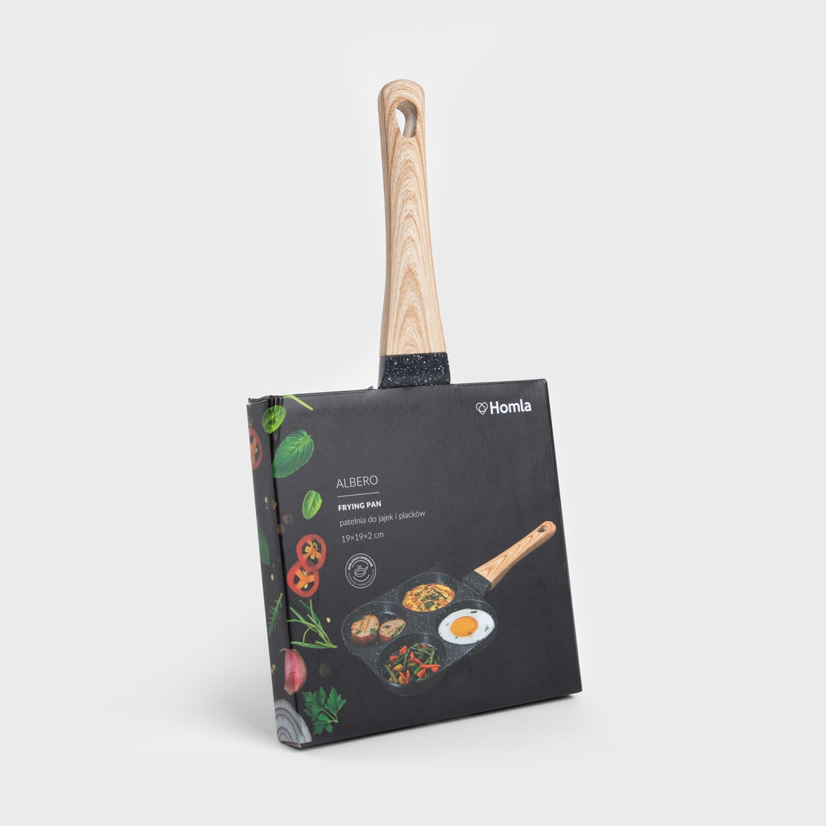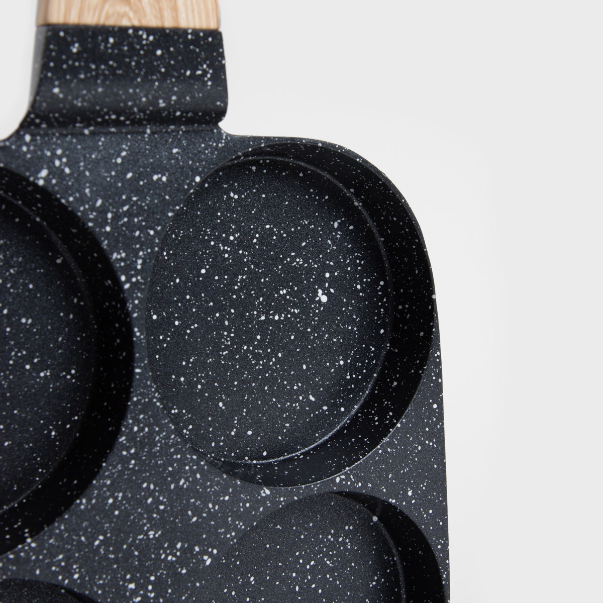 Сковорода ALBERO была разработана с учетом удобства и функциональности. Благодаря четырем углублениям идеальной формы жарить яйца, блины или мини-блинчики становится как никогда просто. Стильный мраморный дизайн придает кухне современный вид.
