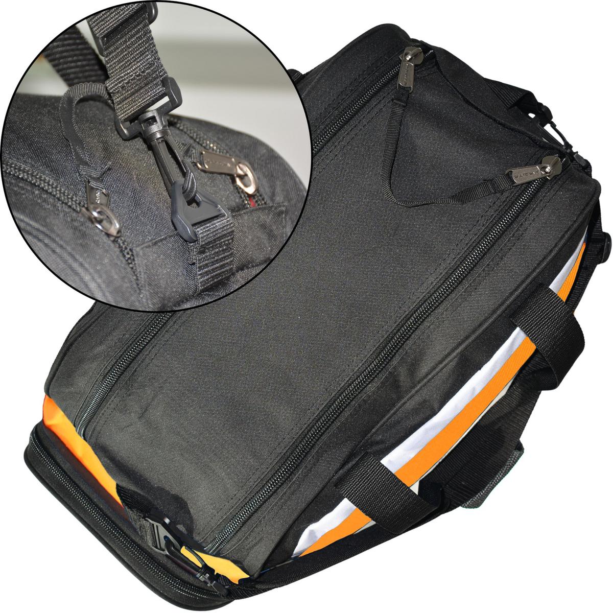 Оснащена регулируемым плечевым ремнем и удобными ручками для переноски в руке. Ремень имеет мягкую подкладку для большего комфорта даже при переноске тяжелых грузов. Благодаря продуманной конструкции сумка хорошо сидит и не стесняет движений.