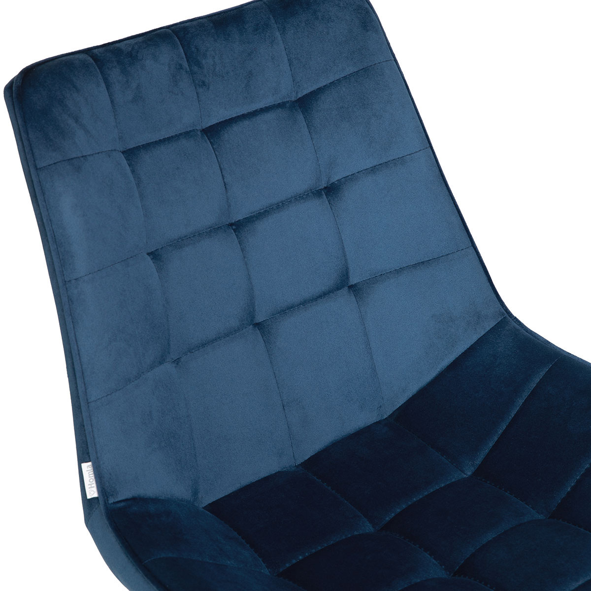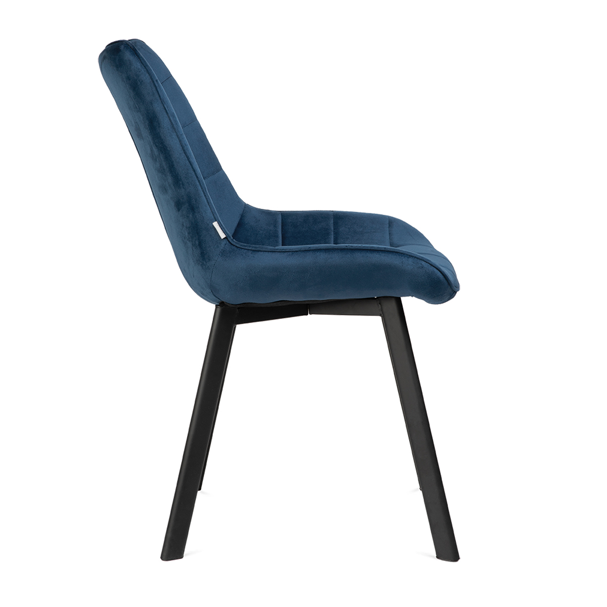 Стул COLIN опирается на металлический каркас, который обеспечивает устойчивость и безопасность кресла. В качестве обивочной ткани используется полиэфирный велюр элегантного темно-синего цвета, который демонстрирует устойчивость к пятнам и протиранию.