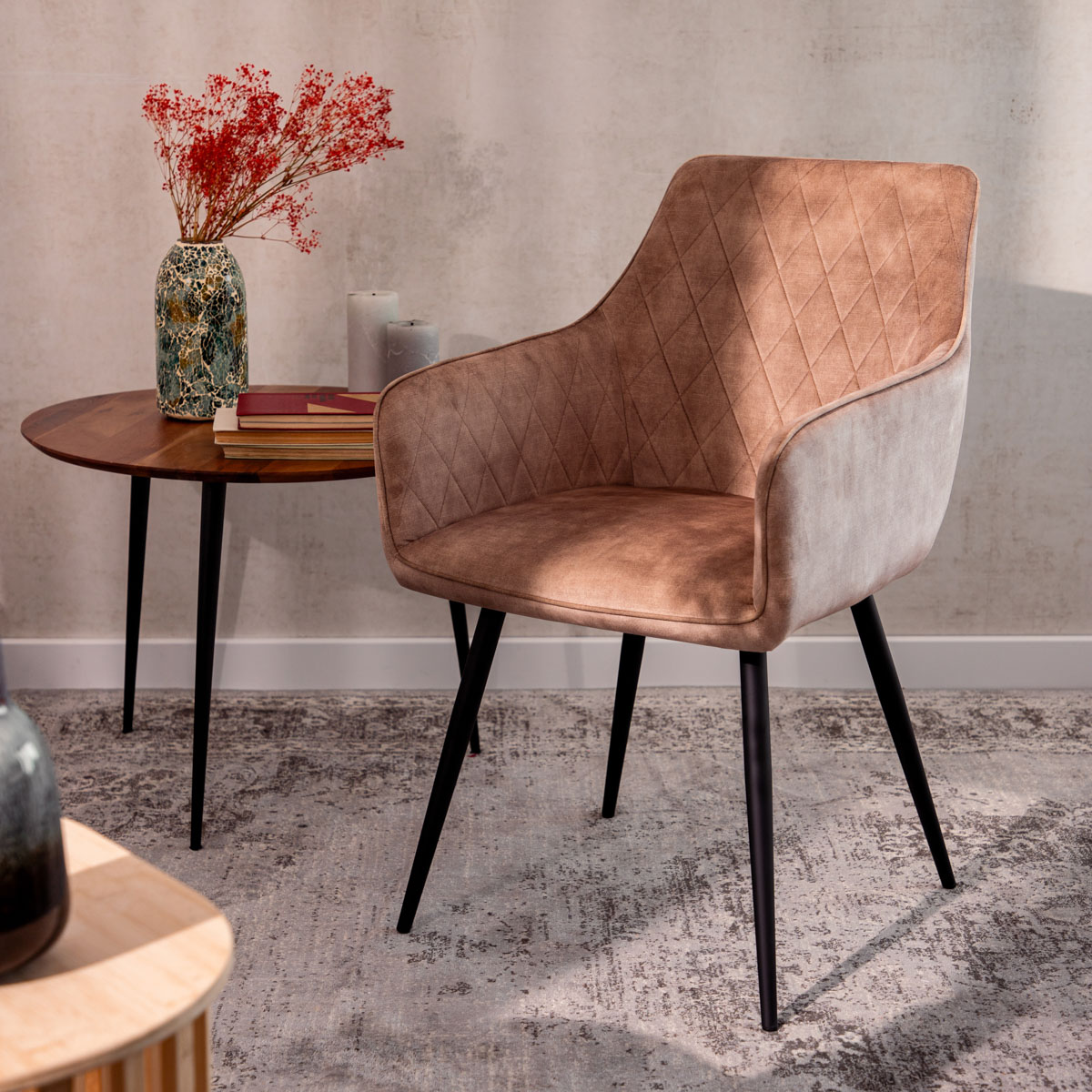 Стул SATORI — мастер адаптации: он прекрасно впишется в столовую, гостиную или даже офисное помещение. Прочная металлическая конструкция ножек гарантирует устойчивость и долговечность использования. Обивка с геометрическим узором притягивает взгляд, создавая не только функциональный, но и декоративный элемент в вашем доме.