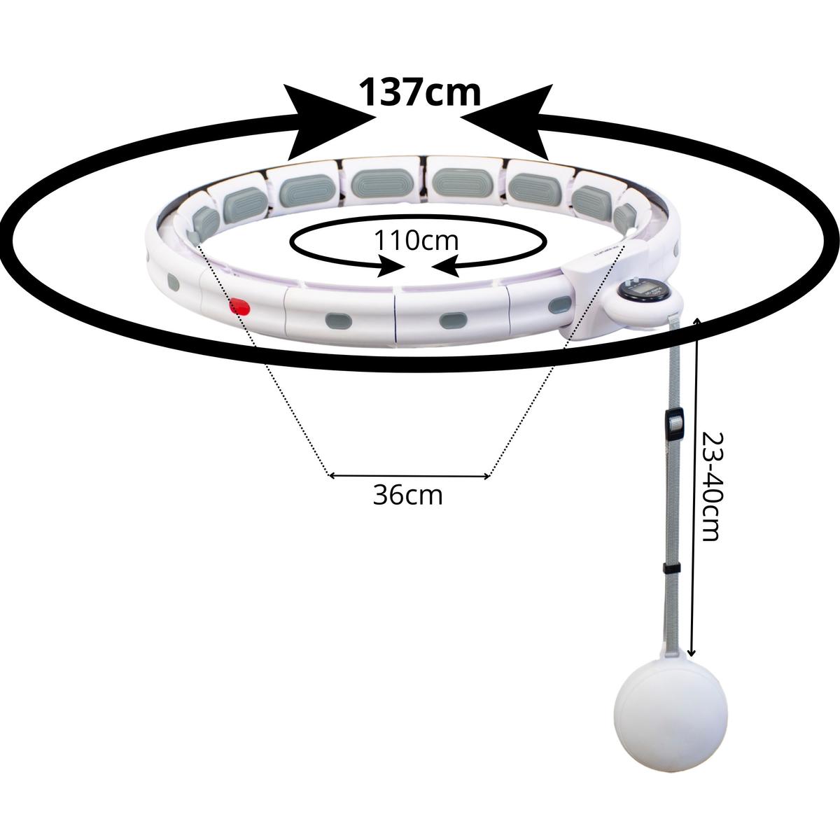 Благодаря системе съемных сегментов вы можете легко настроить хула-хуп под свою фигуру и уровень тренировок. Уменьшение количества элементов делает колесо более плотным и интенсивным в использовании, а полная окружность около 110 см позволяет комфортно тренироваться даже тем, у кого более широкая талия.