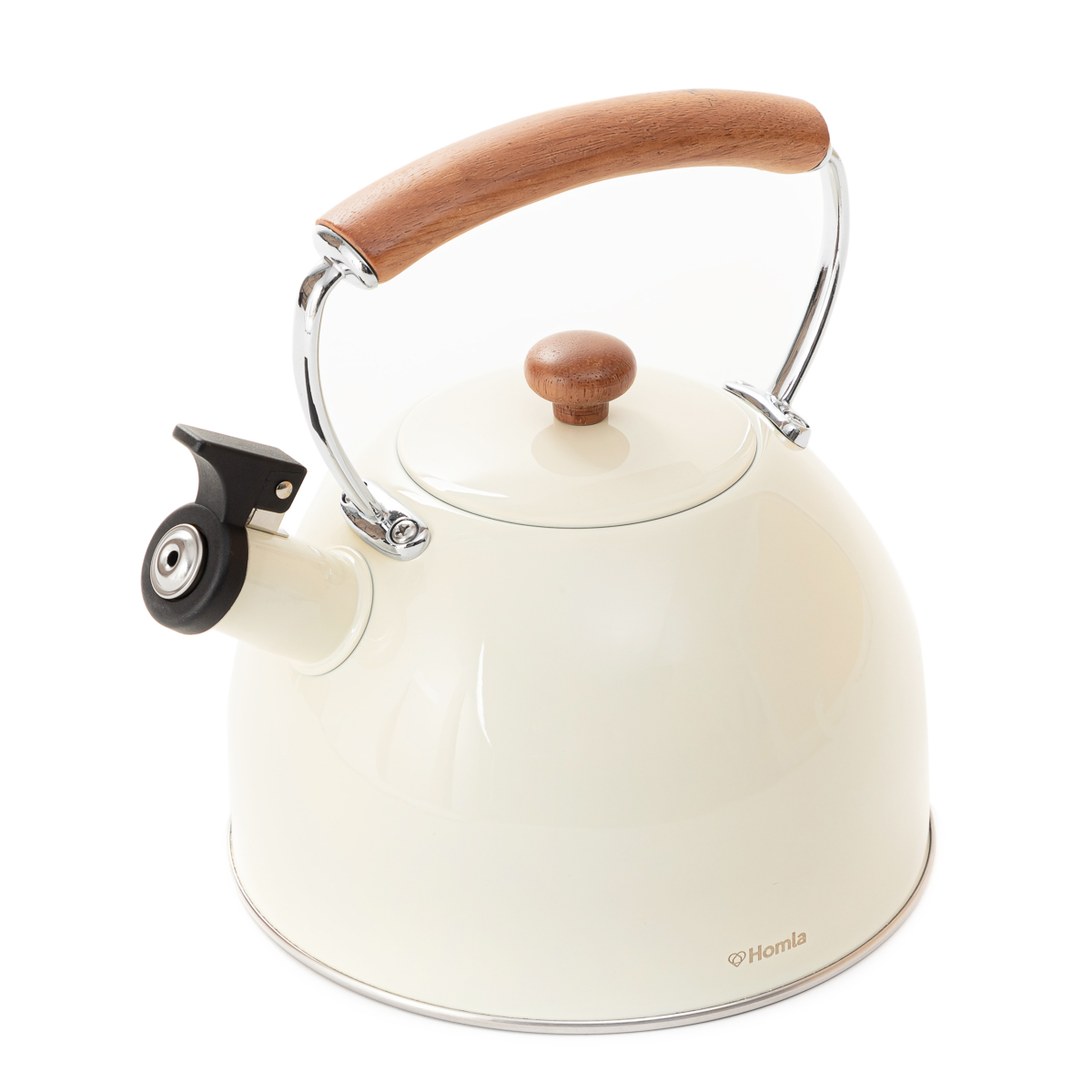 Чайник на плите — практичный прибор, который найдет применение в каждом доме. В отличие от электрического чайника, его можно использовать даже при отсутствии электричества (на газовой плите), и он гораздо меньше подвержен сбоям в работе. Чайник HOMLA VIRGEN идеально подходит для повседневного использования. Его корпус выполнен в бежевом цвете, который отлично сочетается с деревянными ручками и черной крышкой-свистком. Стильное сочетание цветов и глянцевая поверхность делают чайник очень привлекательным и отличным украшением кухонной столешницы.