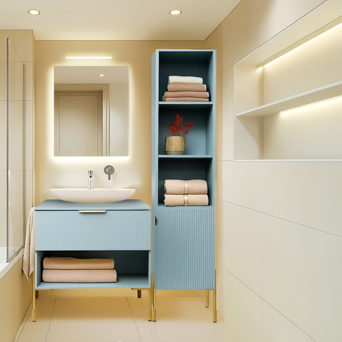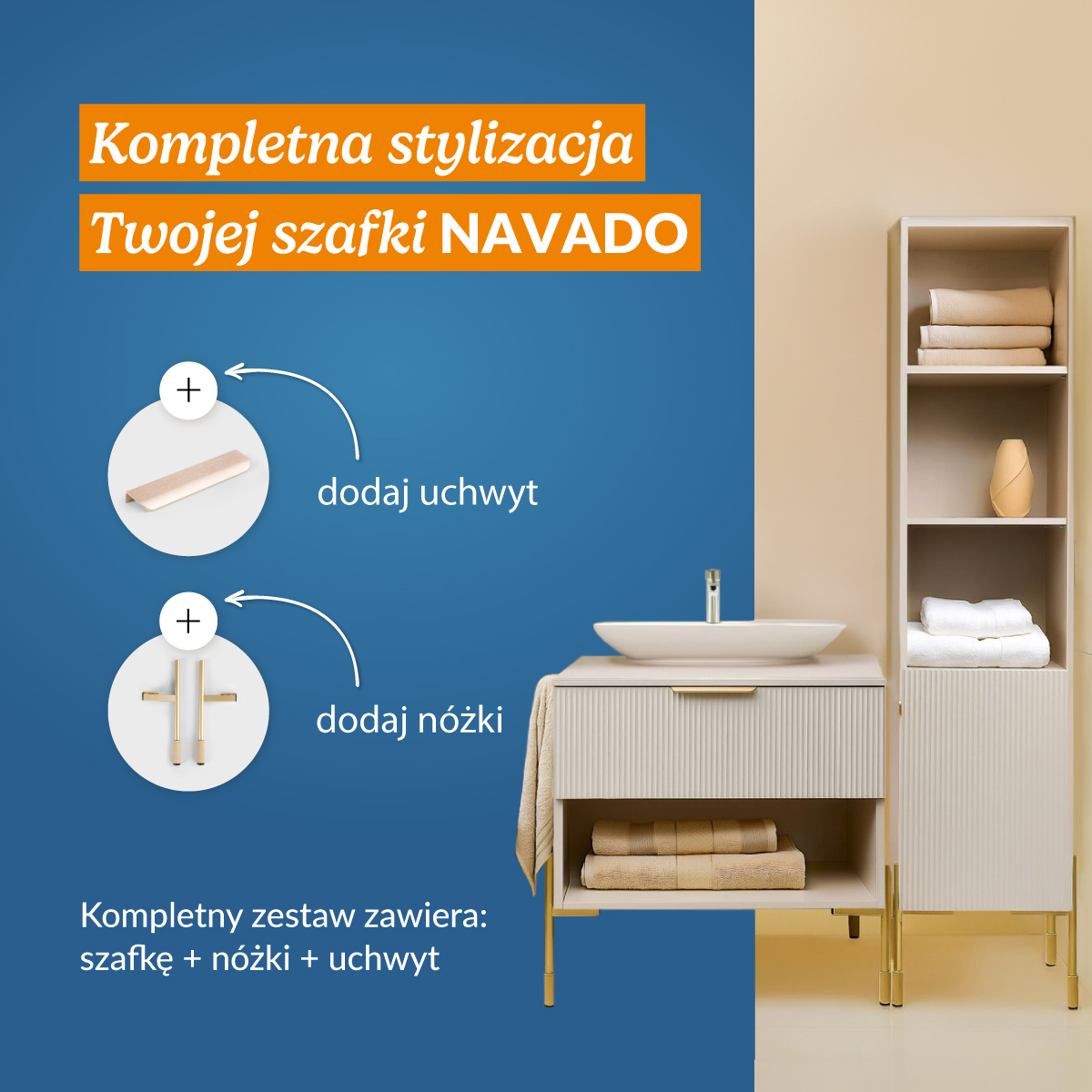 Тумба NAVADO, так называемая колонна, предлагает много места для хранения, не занимая при этом ценного пространства. Он оснащен тремя открытыми полками и вместительным закрывающимся шкафом. В нем вы будете хранить косметику, полотенца и ванные принадлежности. Открытые полки идеально подходят для размещения декоративных элементов, таких как красиво сложенные или свернутые полотенца, декоративные контейнеры, ароматические свечи или растения, а закрывающаяся полка с фрезерованным фасадом обеспечивает незаметное место для менее привлекательных, но необходимых предметов.