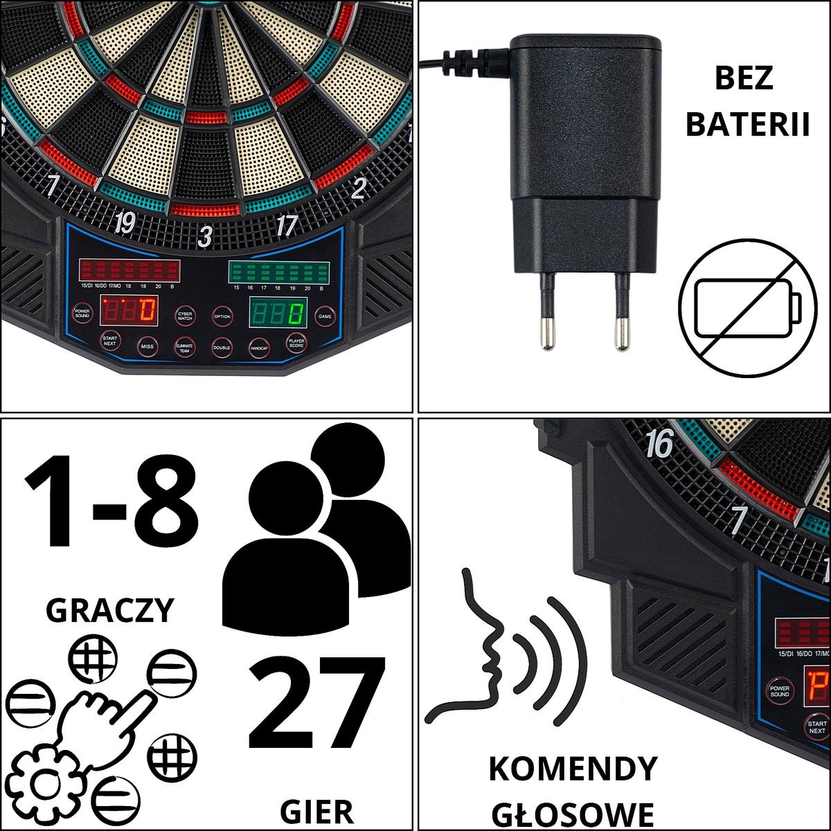 ЭЛЕКТРОННЫЙ ДАРТ С ПИТАНИЕМ И 4 СЧЕТЧИКАМИ 49СМ ENERO PRO — это отличное решение как для любителей классических игр, так и для современных электронных игр. Разнообразные режимы игры, точная система подсчета очков и надежная производительность — идеальный выбор для вечеринок, семейных вечеров или отдыха после работы.