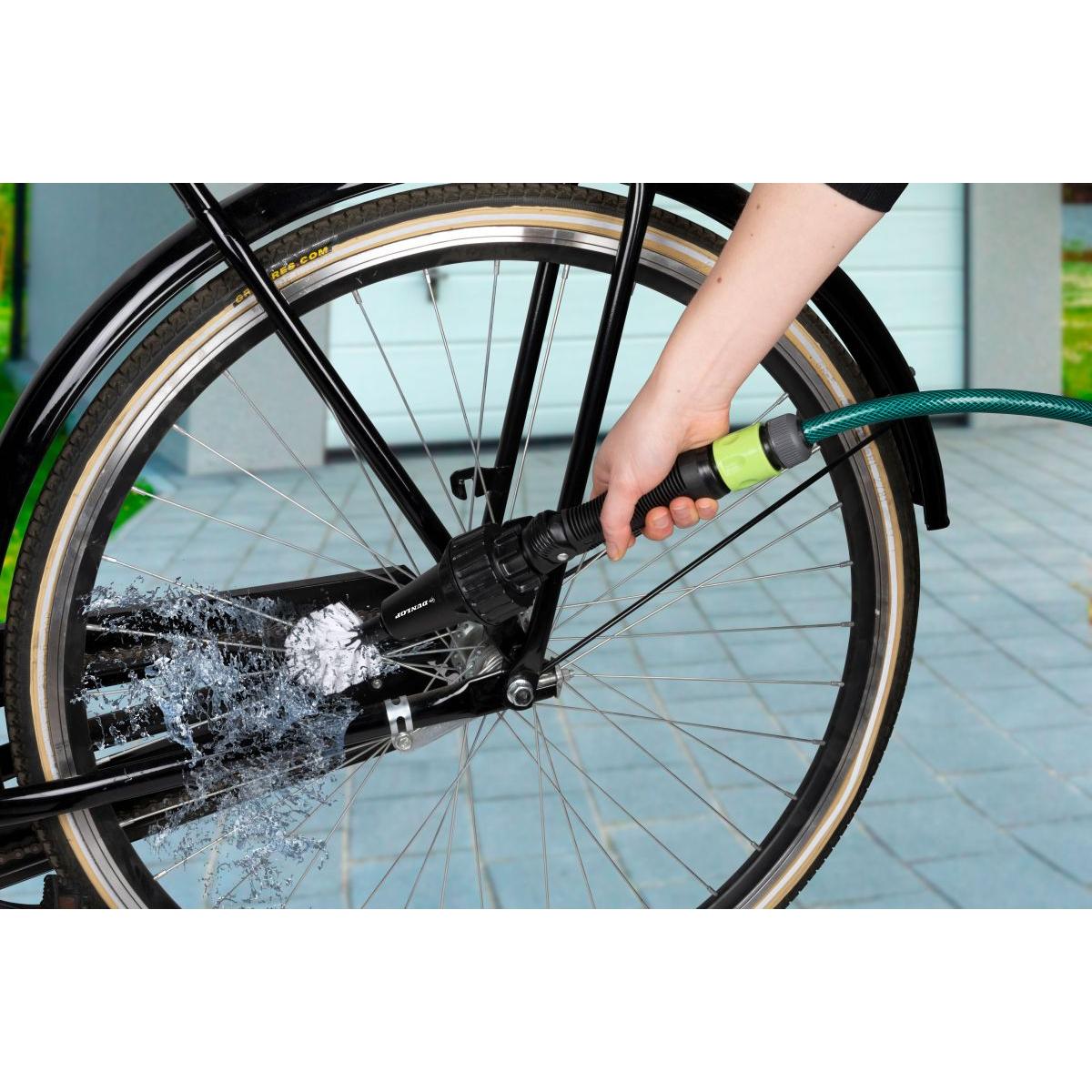 Возможность подключения щетки к садовому шлангу с помощью 3-дюймового быстроразъемного соединения позволит вам очистить любую часть вашего автомобиля или велосипеда под струей воды и смыть грязь во время чистки.
