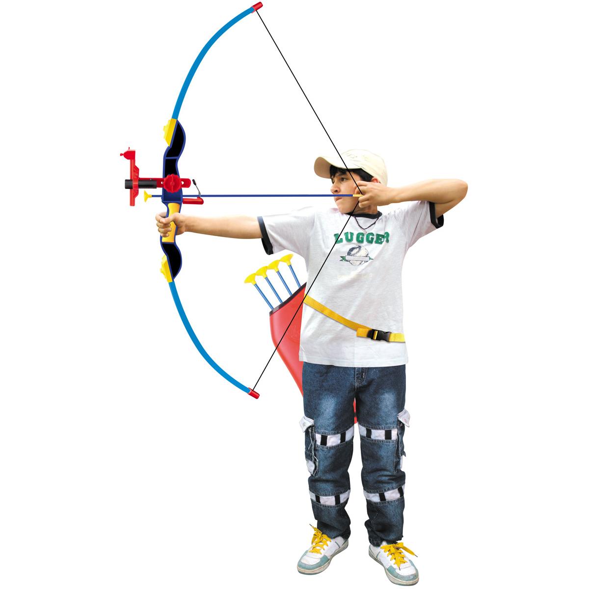 • В набор входят: лук (1 шт.), лазерный прицел (1 шт.), стрелы с безопасными присосками (4 шт.), колчан с регулируемым ремешком (для ношения, например, на поясе)