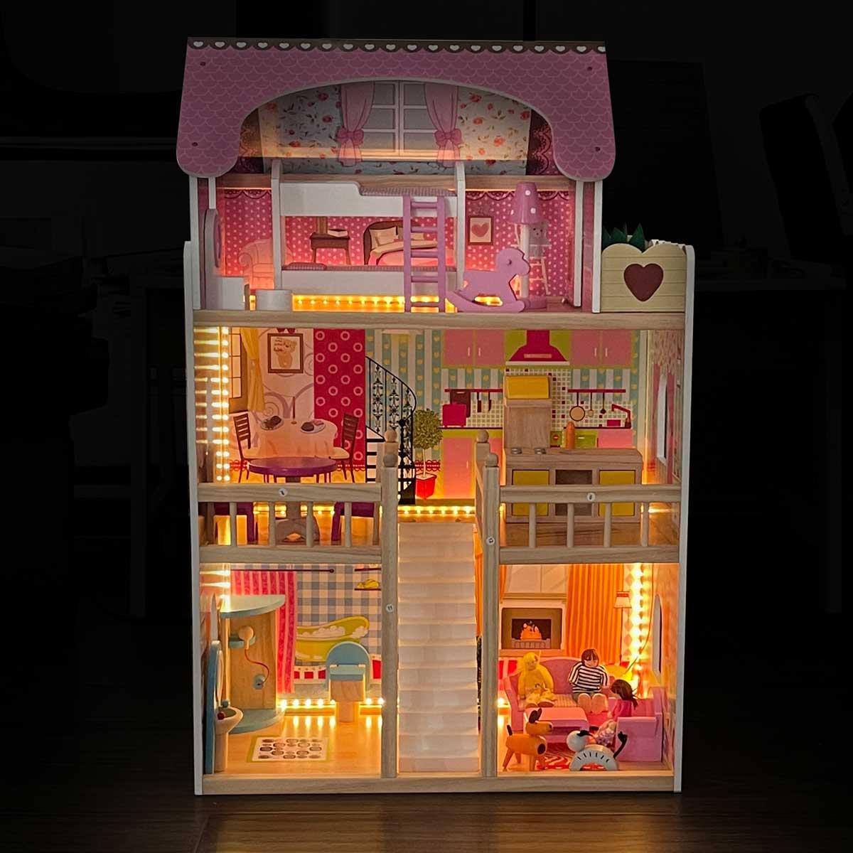 LED DOLLY HOUSE XXXL 60x33x90CM + 3 куклы + 2 животных