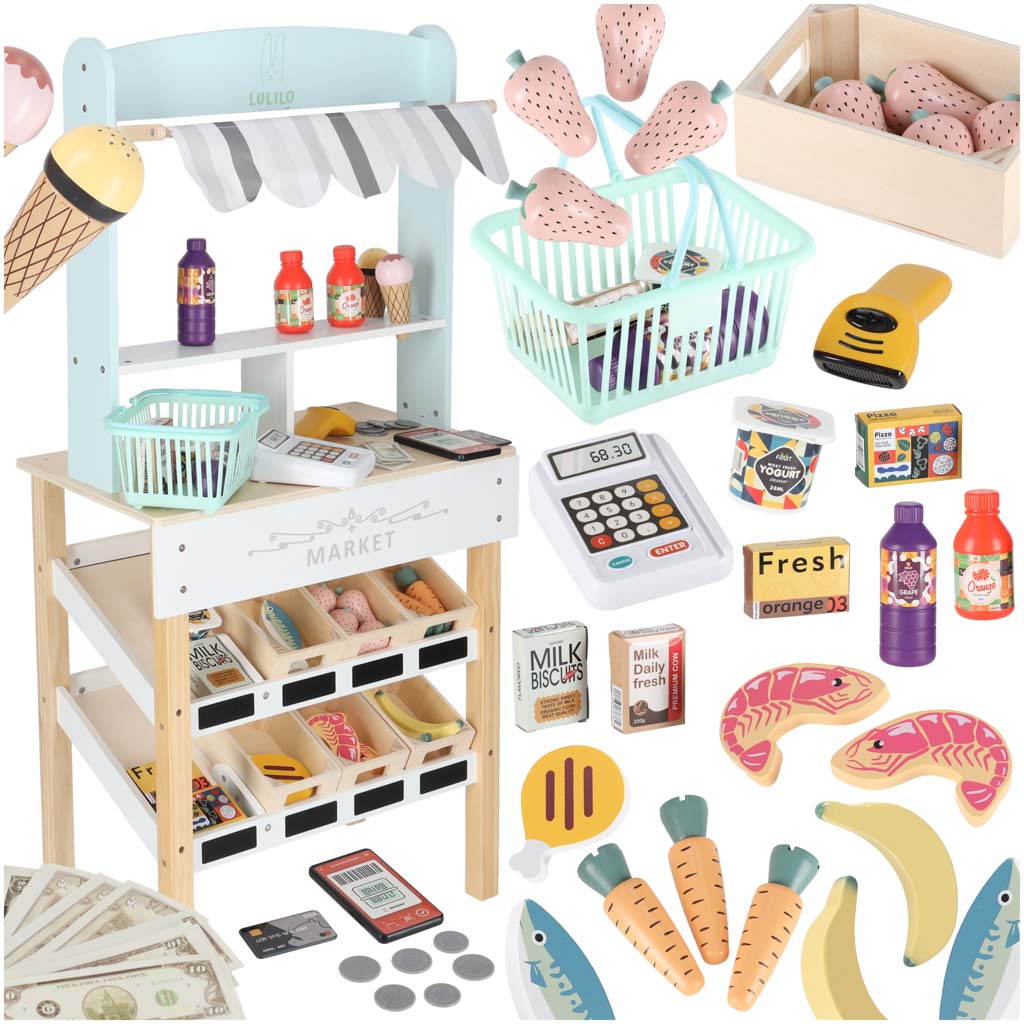 LULILO Melo деревянный рыночный киоск супермаркет с кассовым аппаратомLULILO Melo деревянный рыночный киоск супермаркет с кассовым аппаратом
