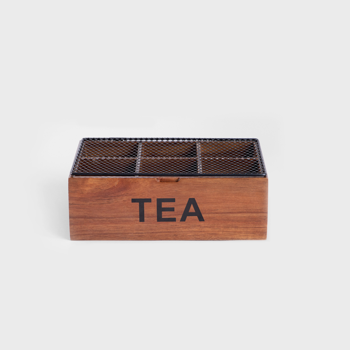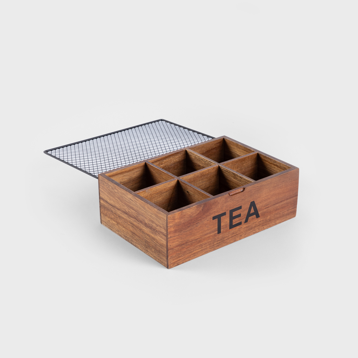 Деревянный органайзер для чая со стальной решетчатой крышкой
