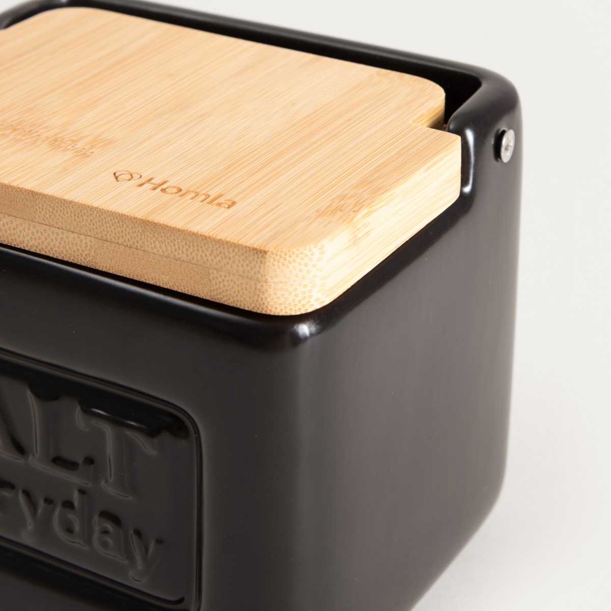 Ищете элегантный и функциональный способ хранения соли? Контейнер SYLAN в классическом черном цвете — отличный вариант. Изготовленный из прочной керамики и оснащенный бамбуковой крышкой, он не только защитит специи от влаги, но и станет стильным акцентом на вашей кухне.
