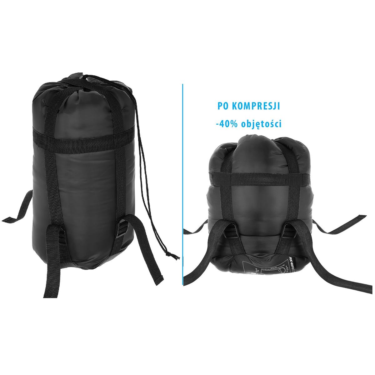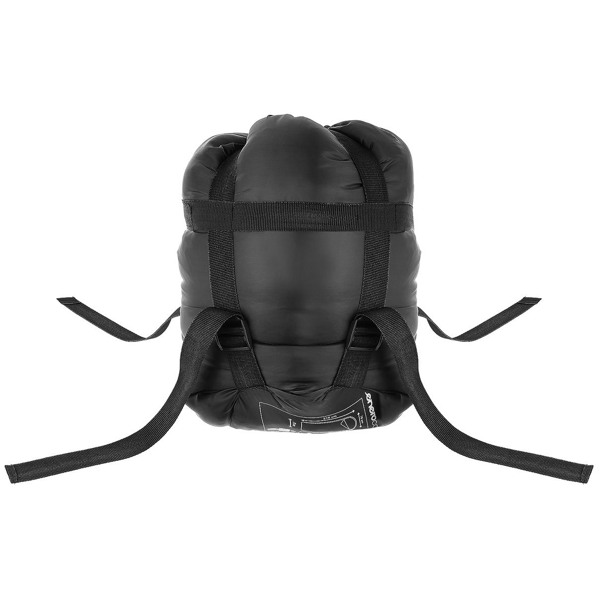 - чехол мешка оснащен компрессионными ремнями, что позволяет упаковать спальный мешок в минимально возможный размер