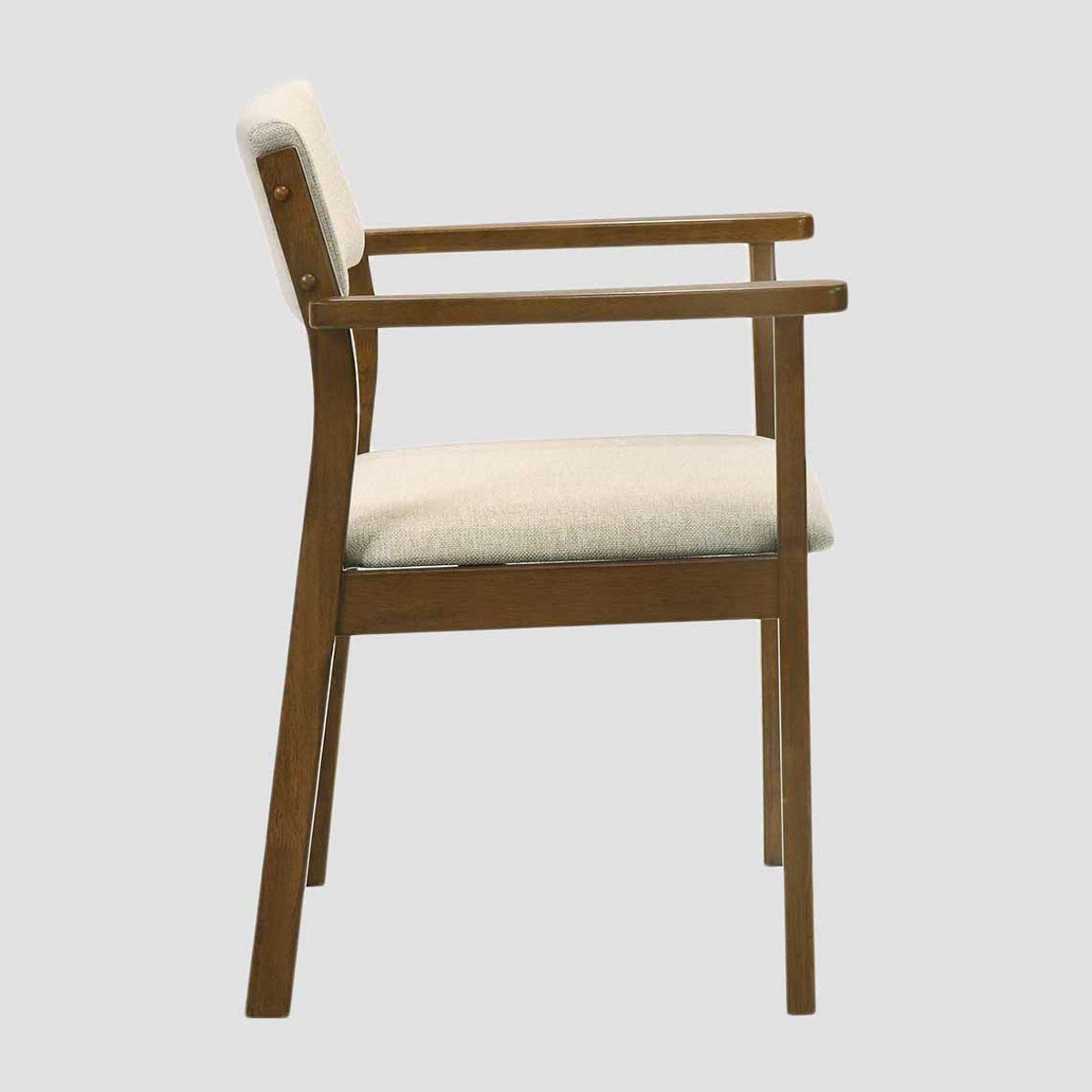 Каркас выполнен из прочного каучукового дерева, а сиденье и спинка наполнены поролоном и обтянуты приятным на ощупь полиэстеровым материалом нейтрального светлого оттенка.